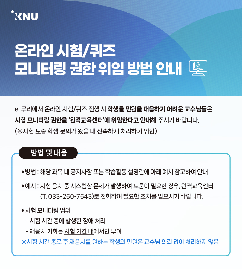 4. 협조사항: 비대면 시험 진행 교수자 대상 ‘비대면 시험 모니터링 권한 위임 안내문’ 안내